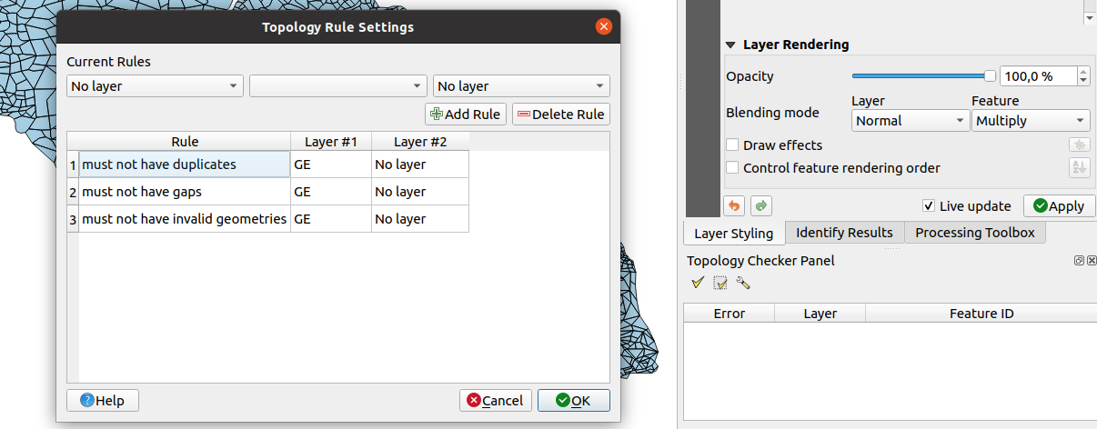 - Activate the Topology checker plugin and then configure the rules to report errors.